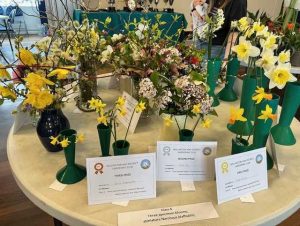 Awards were presented for outstanding plant arrangements, spring flowers, bulbs, and a wide range of plants. It was particularly fascinating to see the many varieties of narcissus on display. The handicraft exhibits were exquisite, showcasing creative embroidery, fashion accessories, woodwork, photography, and paintings. A particularly touching display featured tiny knitted hats and coats for premature babies.